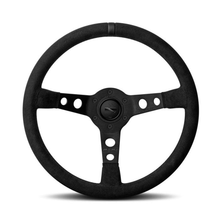The MOMO MOD.07 Black Edition steering wheel is produced from the finest premium Italian black microfibre and features black cut-out aluminium spokes and a "Black Edition" logo laser etched on the right-hand spoke.