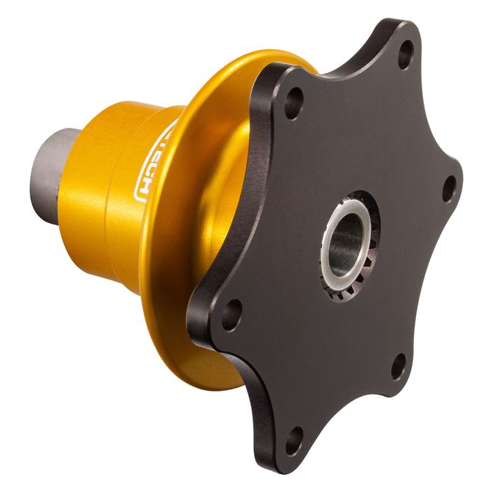 The 6 bolt wheel mounting pattern is suitable for most brands such as Momo, Sparco, Sabelt, OMP, Mountney M-Range, Motacorsa, Reverie, Simoni Racing and any other wheel with a 6 x 70mm PCD bolt pattern. The body of the boss is gold anodised, which conforms to FIA regulations.