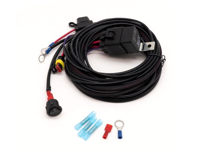 One-Lamp wiring kit for Lazer Lamps High Performance LED lights. The setup is quick, easy, and reliable with 2-pin Superseal connection and no configuration procedures. The kit features a 12V relay (in waterproof housing), fuse, a battery terminal at one end, and 1.2m of flex on the lamp cable, and allows for the operation of Lazer products either in parallel with the standard lighting on the vehicle, and/or via an independent switch which can be mounted inside your vehicle.