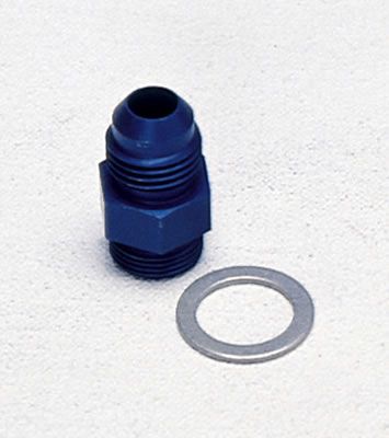 Aeroquip Fitting, Carburetor Inlet, -6 AN Male to 9/16-24 in. Male Thread, Aluminum, Blue