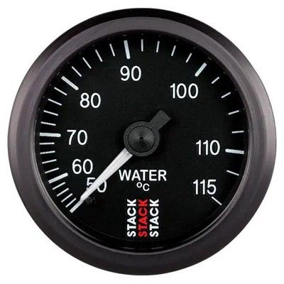 A mechanical water temperature gauge from Stack which is ideal for vehicles with no or low powered electrical systems. If a back light is not required then the gauge can be operated with no electrical connection at all, however the gauge is supplied with a white LED back light and illuminated needle which require a 12 volt feed.