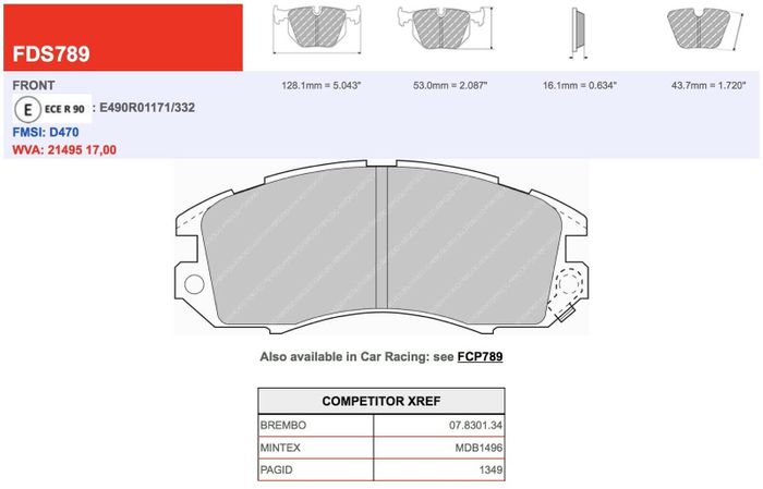 DS Performance is recommended for road use only. R90 compliant (EU standard for road pads).