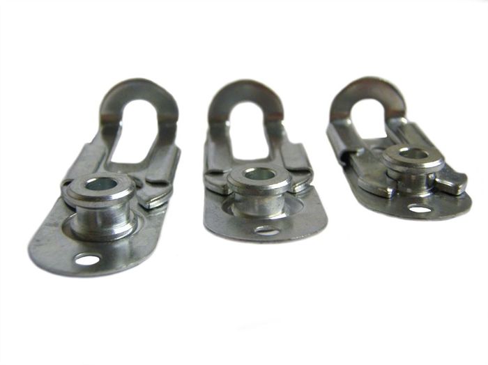 This Dzus Slide Latch comprises a sliding bar attached to a housing / mounting plate (which is riveted to the panel). The latch engages onto a bush which can be riveted or screwed to the support member.