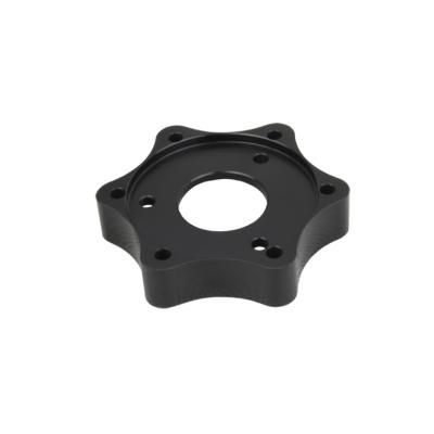 Adaptor from 3 hole QR mechanism to suite a 6 hole MoMo / Sparco type drilling.