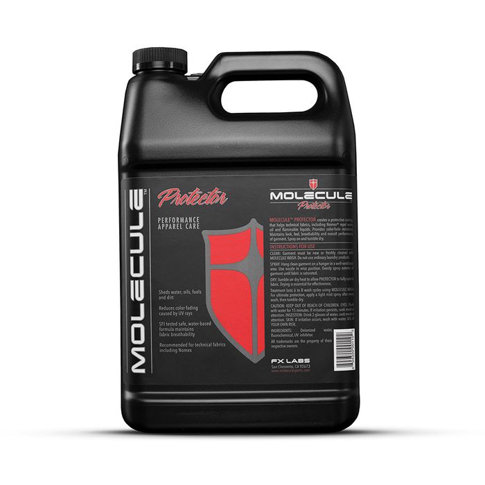 Racing suits made from Nomex® technical fabric have extraordinary properties to protect drivers from flames and heat. Care instructions published by Nomex® manufacturer state that this unique fabric requires special care to be fully effective. Molecule has been designed for the unique soils and harsh conditions of the racing environment.